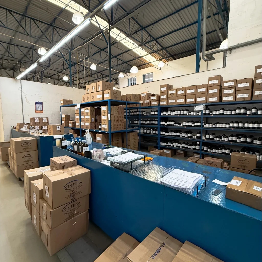 Com sólida atuação como indústria e comércio, a Cinética é referência no fornecimento completo de reagentes, produtos químicos e materiais para laboratórios. Desde 1988, produzimos a linha Cinética Reagentes & Soluções, além de distribuir as mais renomadas marcas nacionais e importadas, sempre com rigoroso controle de qualidade.